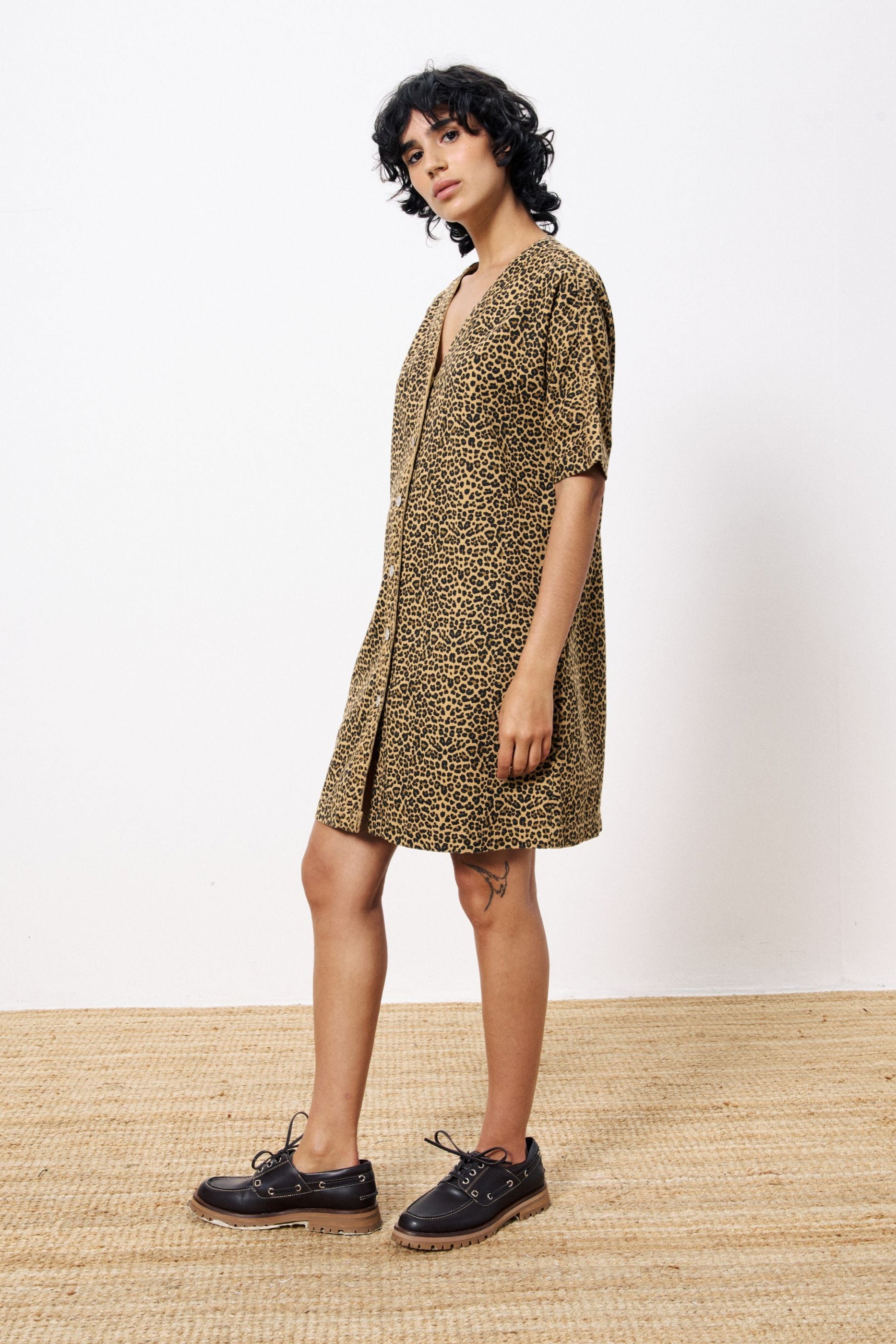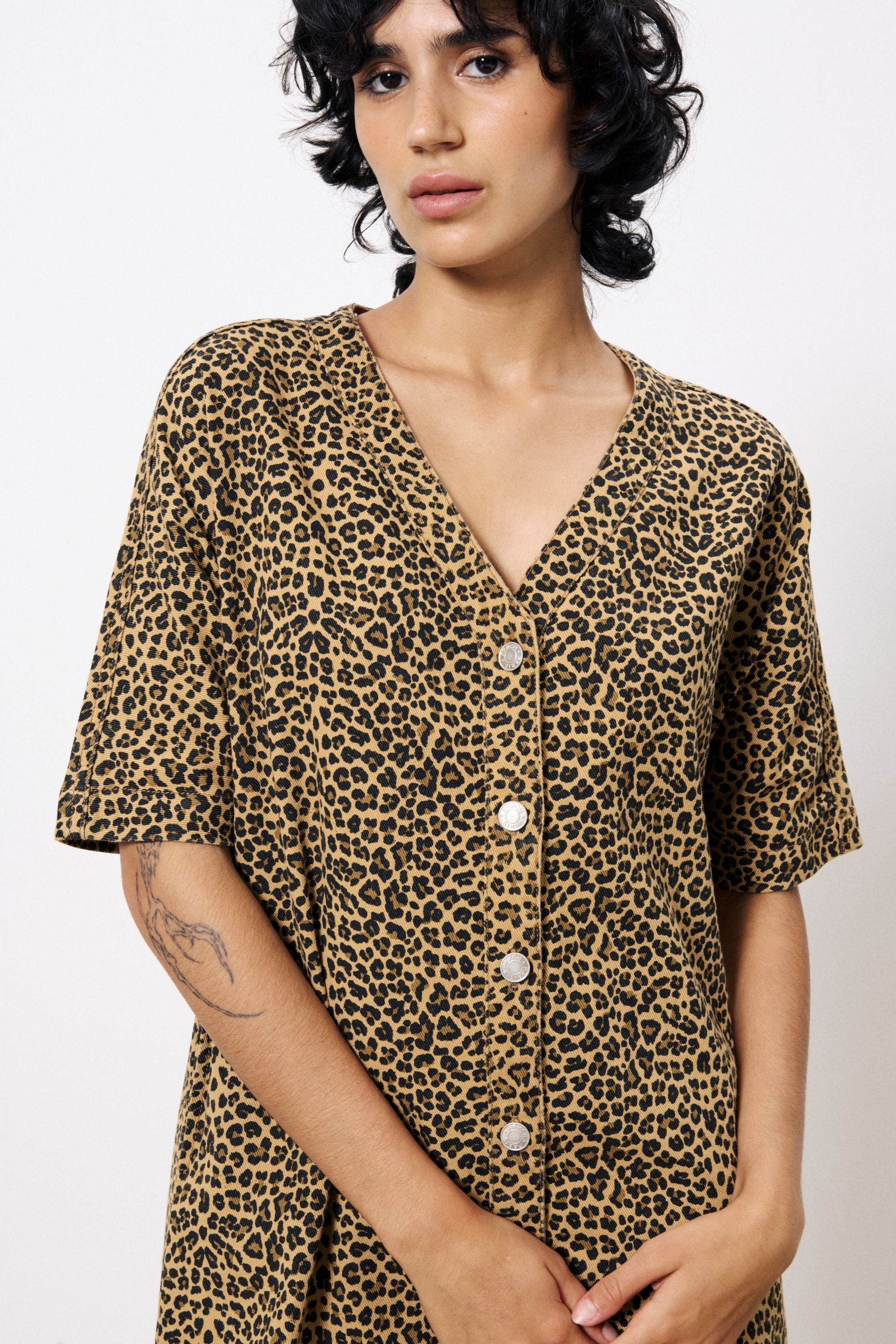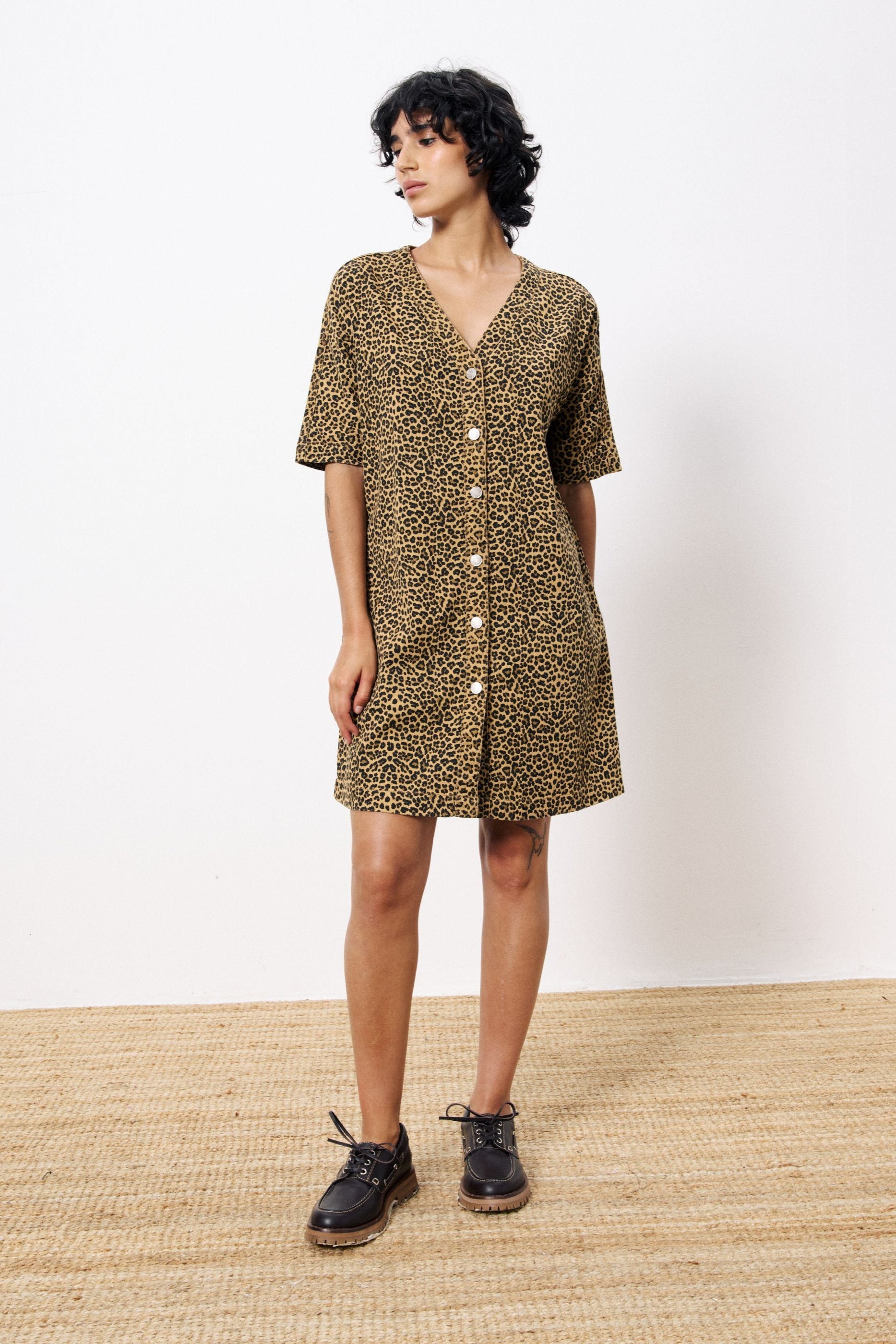 Aelita Leopard Denim Dress