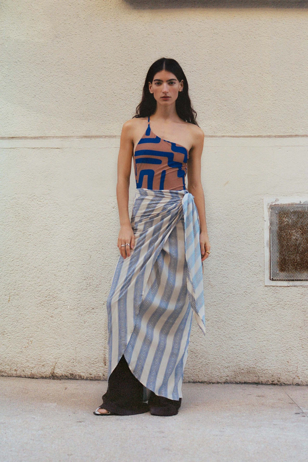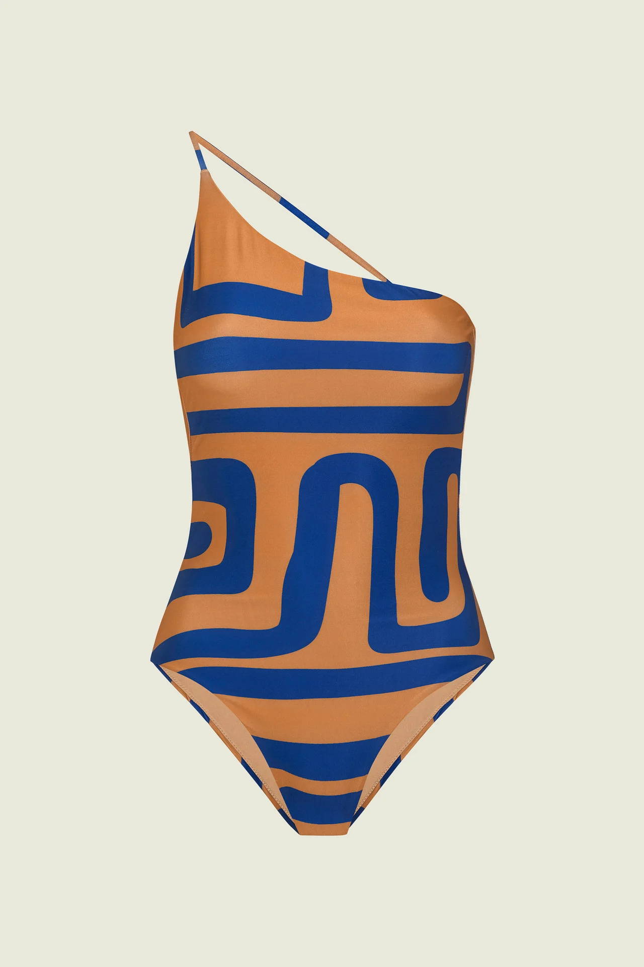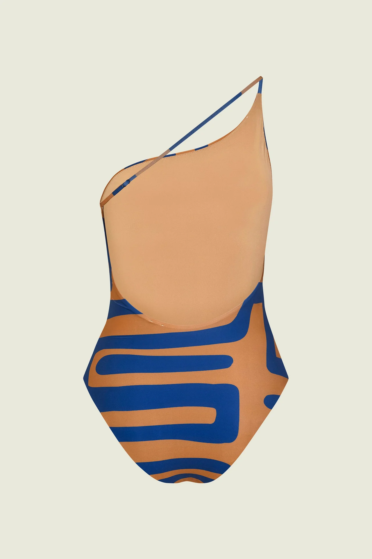 The Bayuda Tuffo bathing suit is shaped to a one-shoulder silhouette that turns to reveal an open back. Made in a UV-protective stretch fabric with a soft sheen. It has a modern, minimalist cut with concealed seams for a sleek look that will easily double up as a bodysuit when you're away from the beach. Fully lined.
