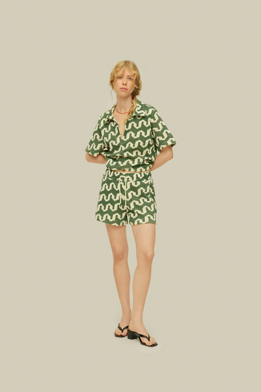 Ariana Wave - Mini-robe rayée en tricot au crochet boutonnée sur le devant