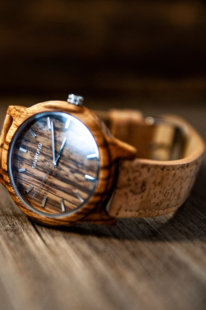 Les montres en bois GOWOOD sont équipées d'un mouvement suisse réel à 3 aiguilles (heures, minutes et secondes) pour la meilleure qualité et précision possible dans l'indication du temps. Ce qui rend cette montre particulièrement exclusive, c'est le véritable bracelet en liège. Le liège est considéré comme l'alternative en cuir végan, donc aucun animal n'a dû donner sa vie pour la production de ce bracelet. L'intérieur est fabriqué à partir d'un type de cuir artificiel, qui est lisse sur la peau et très confortable à porter. Le boîtier de la montre est entièrement produit en bois véritable. Choisir le bois permet non seulement de réduire efficacement la quantité de plastique à produire, mais donne également une sensation de chaleur et de confort sur la peau. Le verre acrylique ultra clair est résistant aux rayures et aux chocs. Techniquement, l'acrylique n'est pas du vrai verre, mais un type de plexiglas. Il est généralement utilisé pour les montres au lieu du vrai verre.