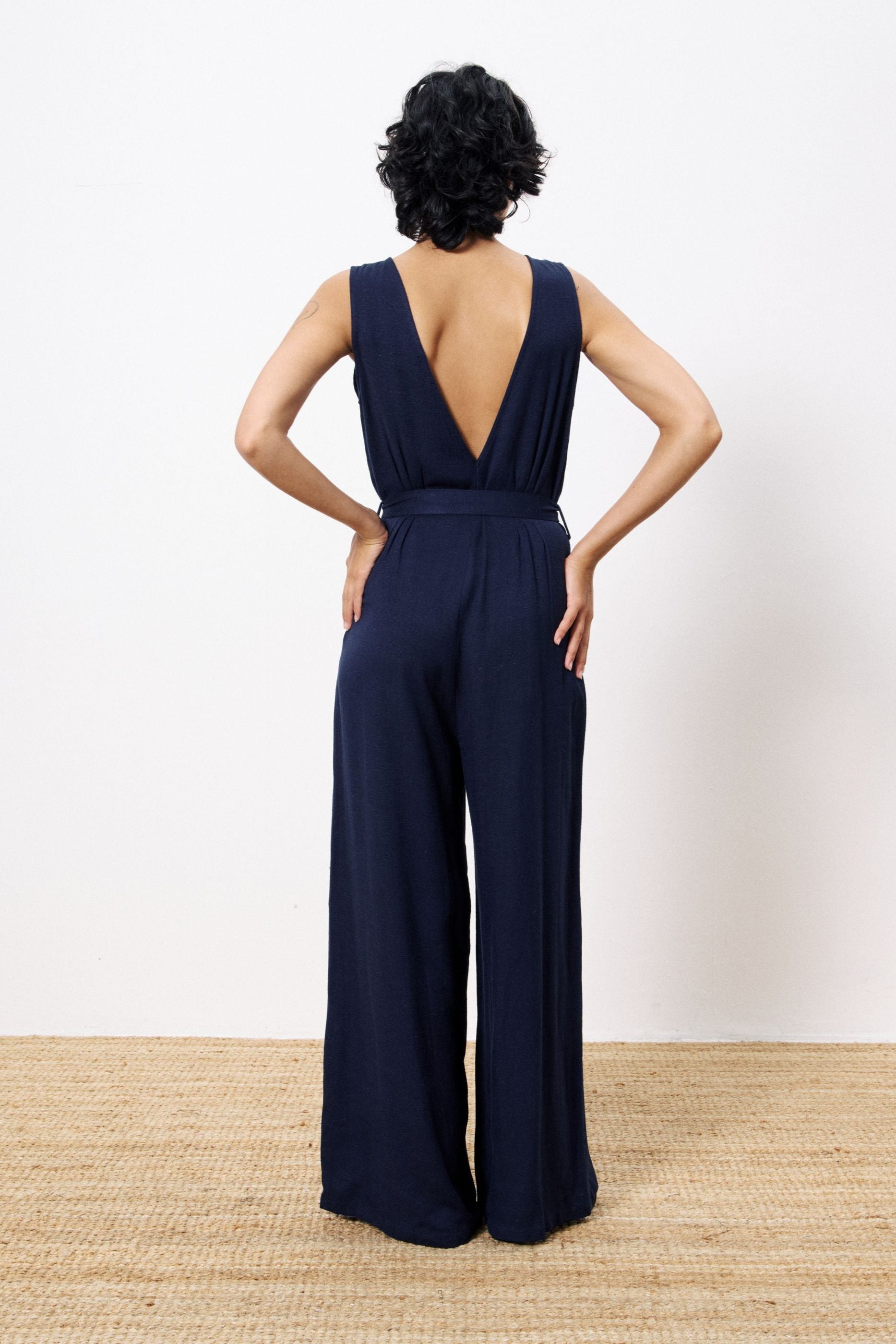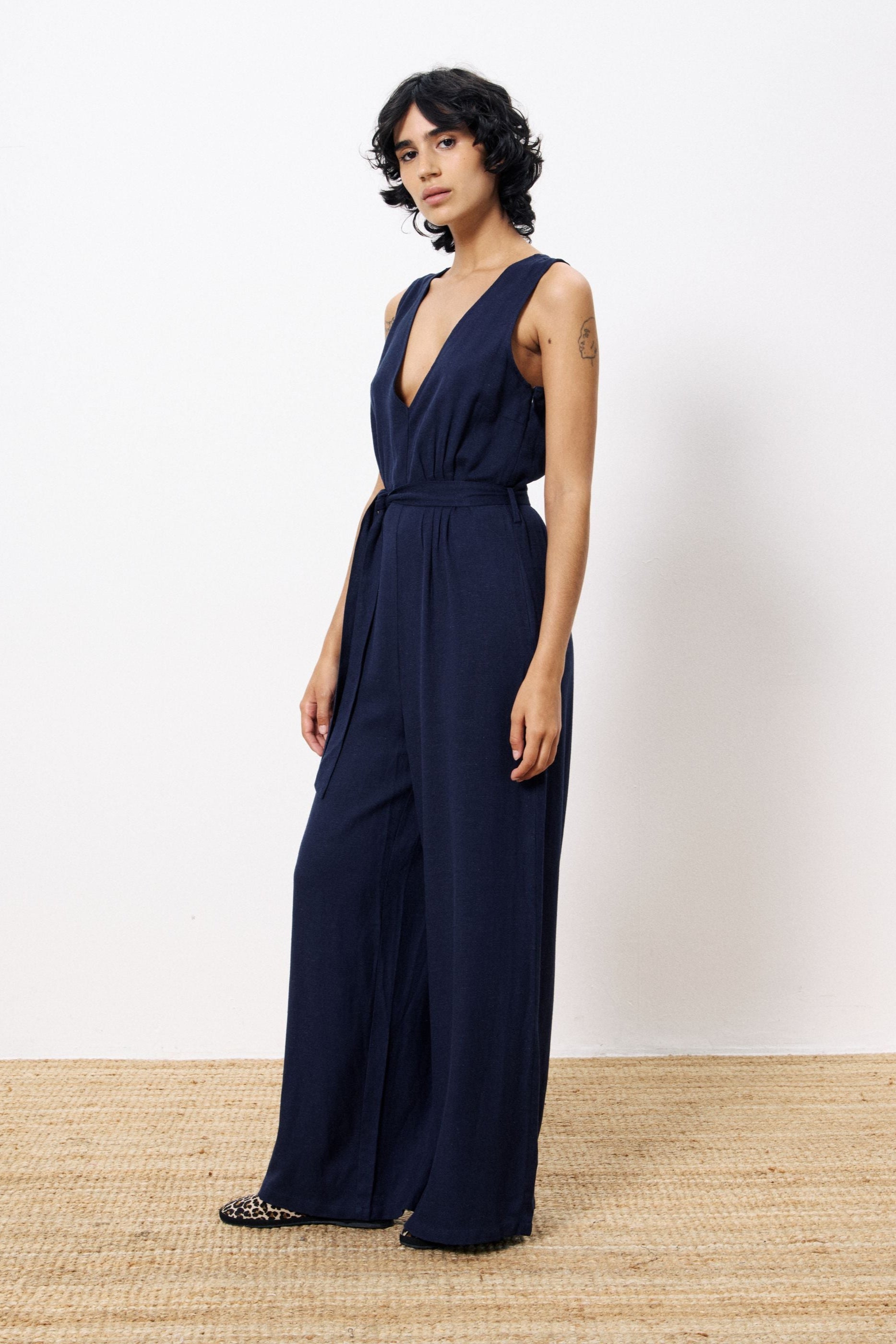 Facile et décontracté, cette combinaison est parfaite pour les temps chauds. La ceinture à nouer vous cintrera à la taille, tandis que les jambes larges offrent une silhouette décontractée. Les touches finales subtiles incluent un col en V et des surpiqûres définies.