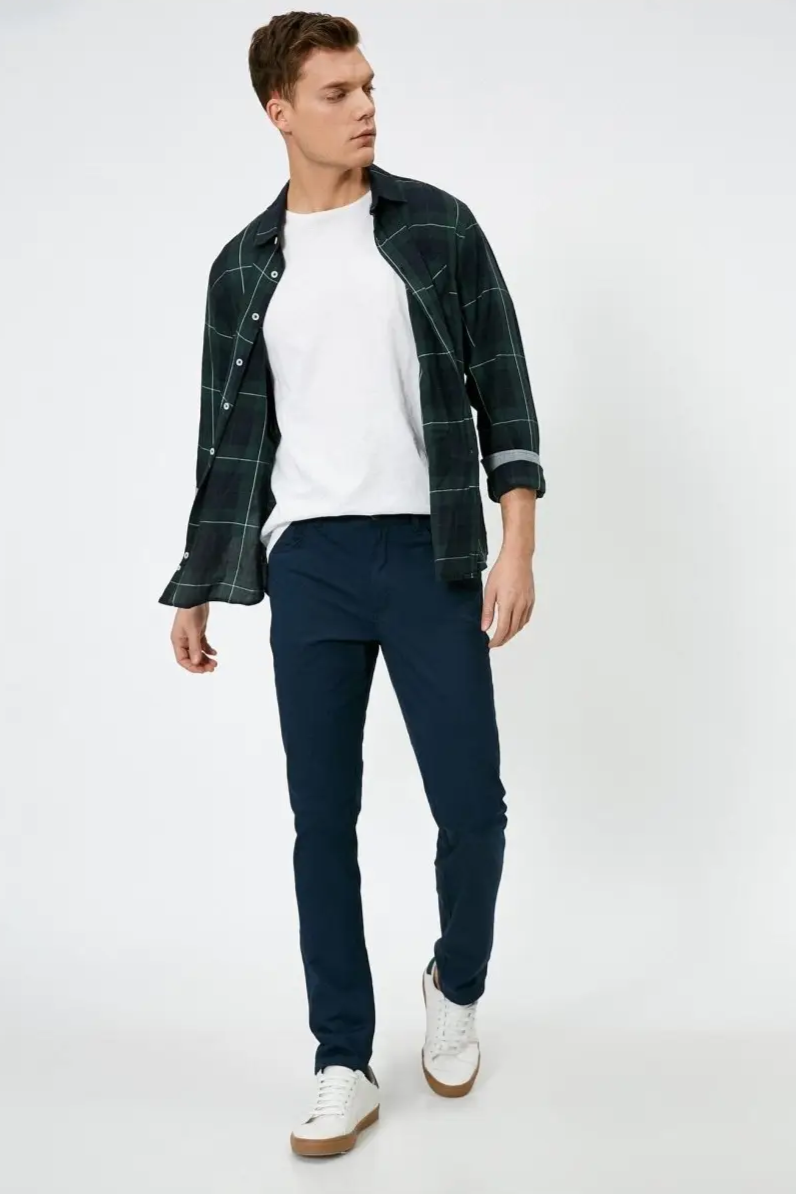 Présentation du pantalon en twill ajusté en marine - parfait pour toutes les occasions ! Fabriqué avec une taille régulière et une fermeture éclair, ces pantalons à 5 poches sont confectionnés en twill extensible lavé pour un confort et un style ultimes. Élevez votre garde-robe et adoptez le design ajusté et polyvalent.
