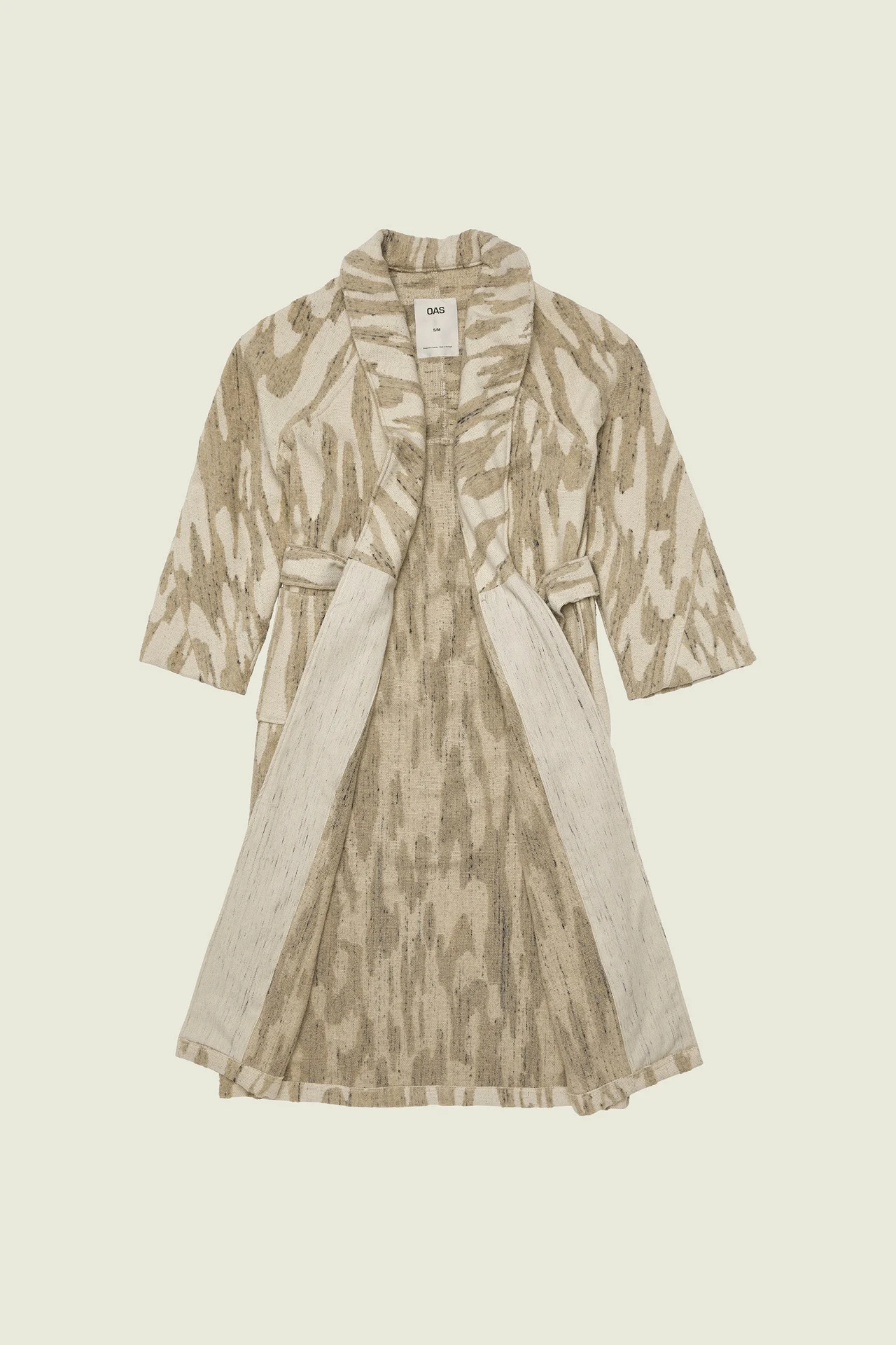 Le peignoir Fern en lin éponge utilise des techniques de jacquard éponge pour sculpter un motif qui met en valeur l'interaction des textures naturelles. Enveloppant le corps avec sa silhouette généreuse en mélange de coton-viscose-lin léger et fini avec un col châle, des poches plaquées et une ceinture amovible à nouer. Unisexe.