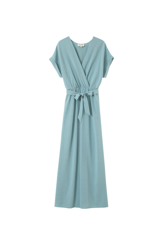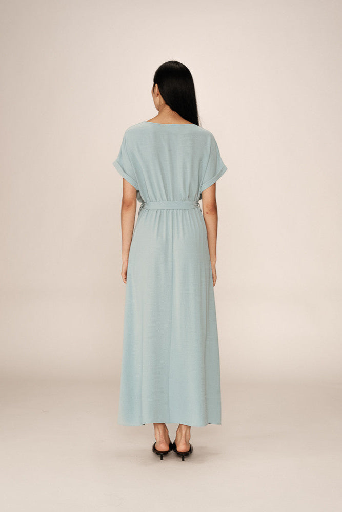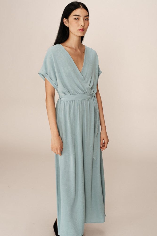 Inspiration des années 90, tout l'été. Cette robe midi est dotée de détails effet portefeuille qui ne passent pas inaperçus. Il possède également des manches retroussées et une ceinture amovible à la taille pour une coupe cintrée ou décontractée.
