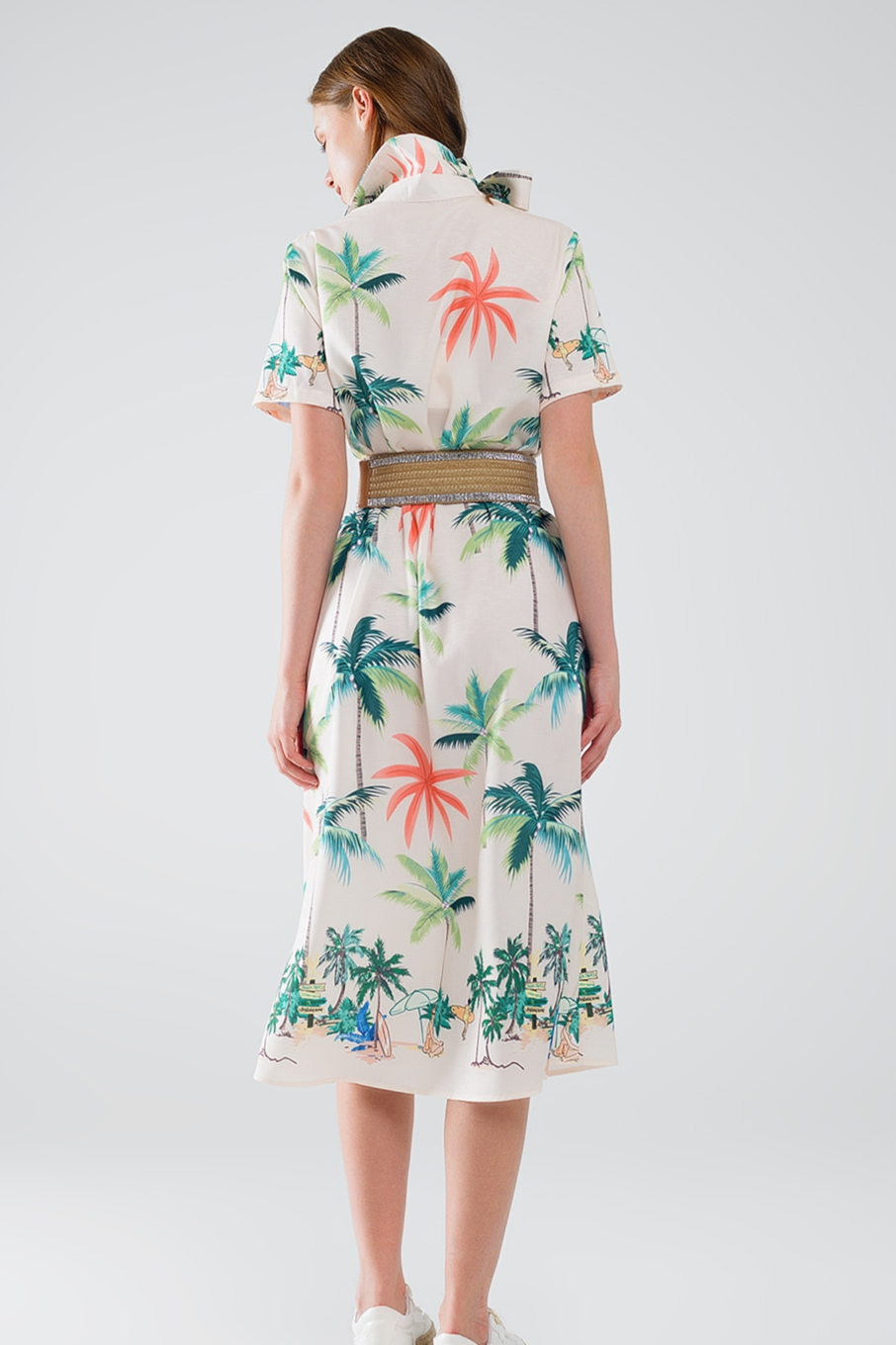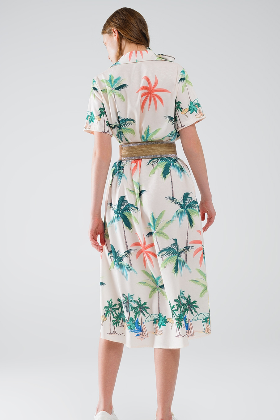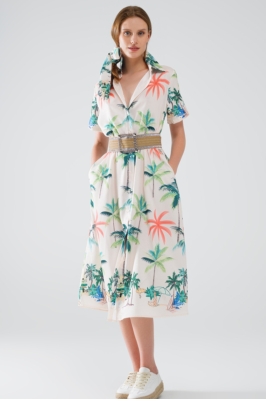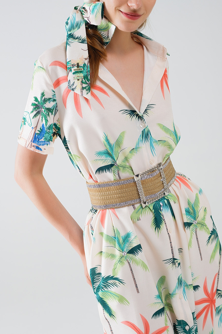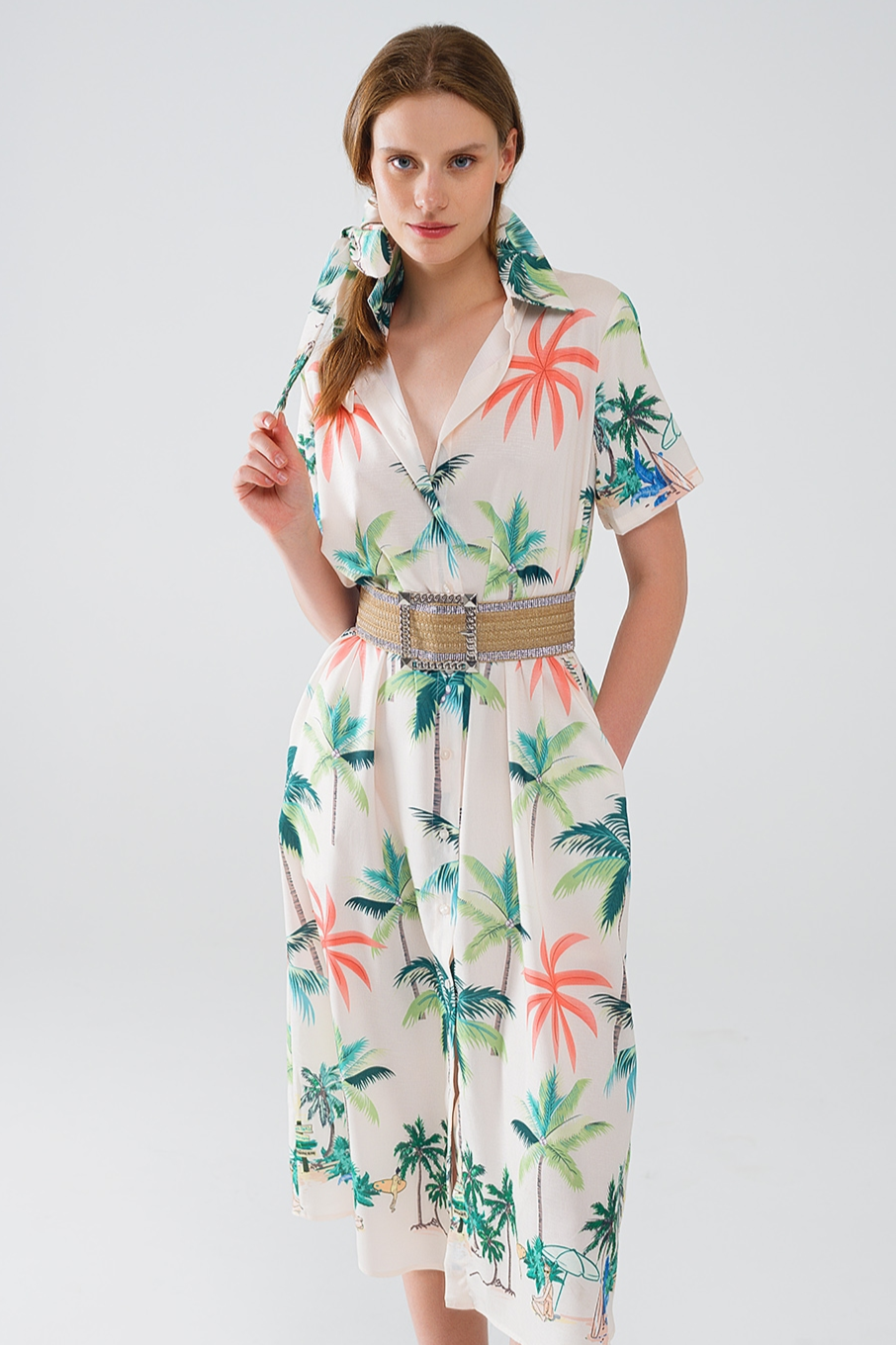 Designed with summer in mind. This breezy dress has buttons all the way down the front, short cuffed sleeves and a polo collar neckline. Plus, it comes with a tie at the waist for a cinched or relaxed fit and is crafted from a light slightly textured fabric.