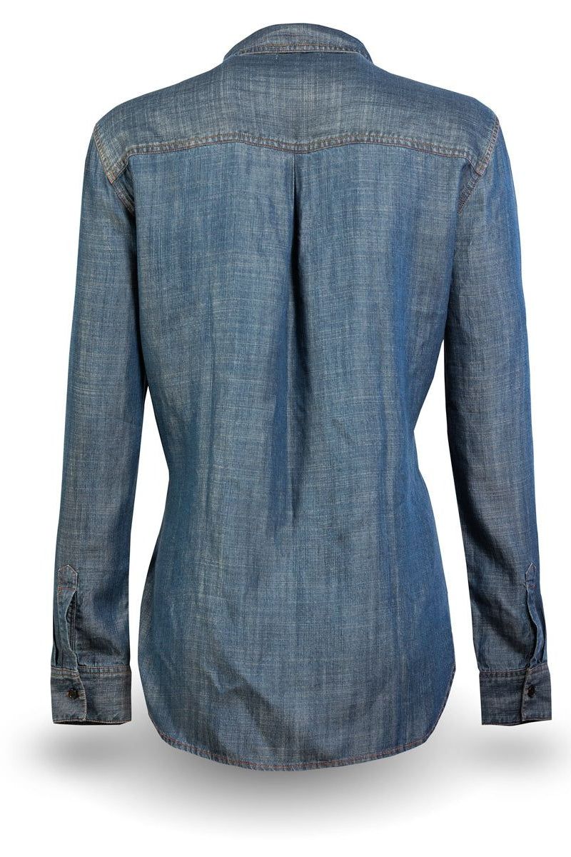 Less buttoned-up, more low-key... Introducing the Celka denim shirt we like to think of it as the ultimate "everyday" shirt. Every bit as perfect as an under-blazer layer as it is with jeans, this fit has a little extra room and a just-right length. And it's the details that make this shirt truly special—like the cute front pockets, the gold and orange accent stitching, the beautifully finished seams from the inside out, so the sleeves are essentially made to be rolled. Plus, it's crafted in a comfy fabric that’s not too heavy (aka it goes with everything).