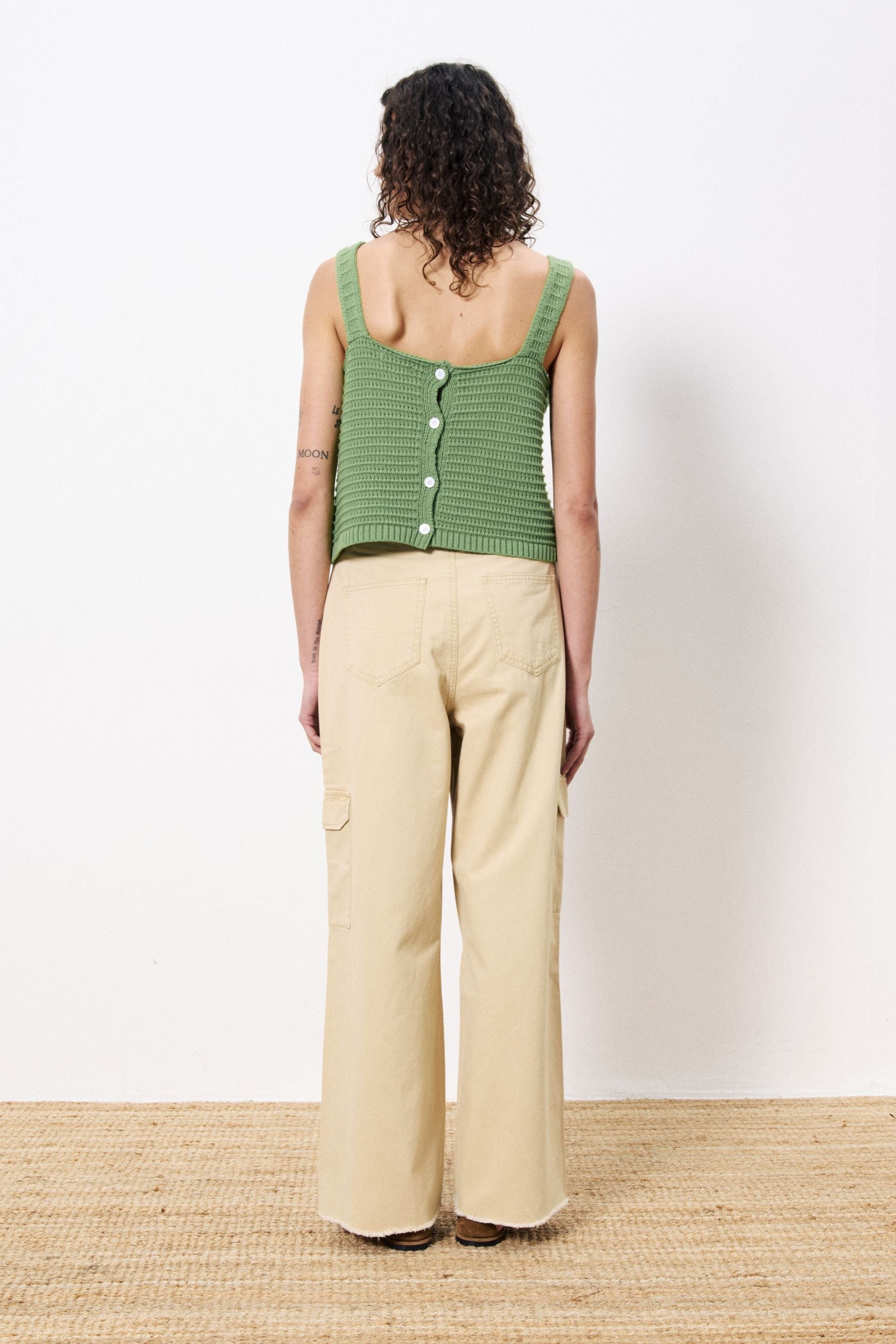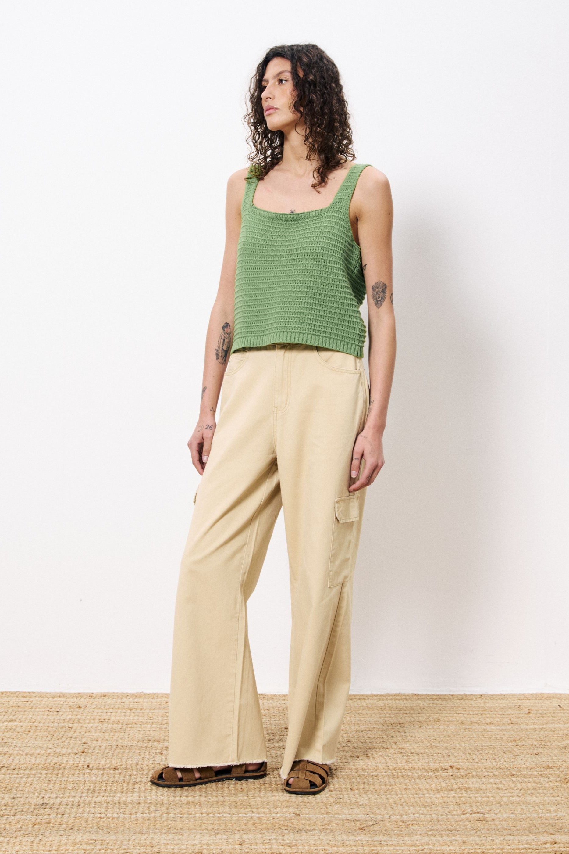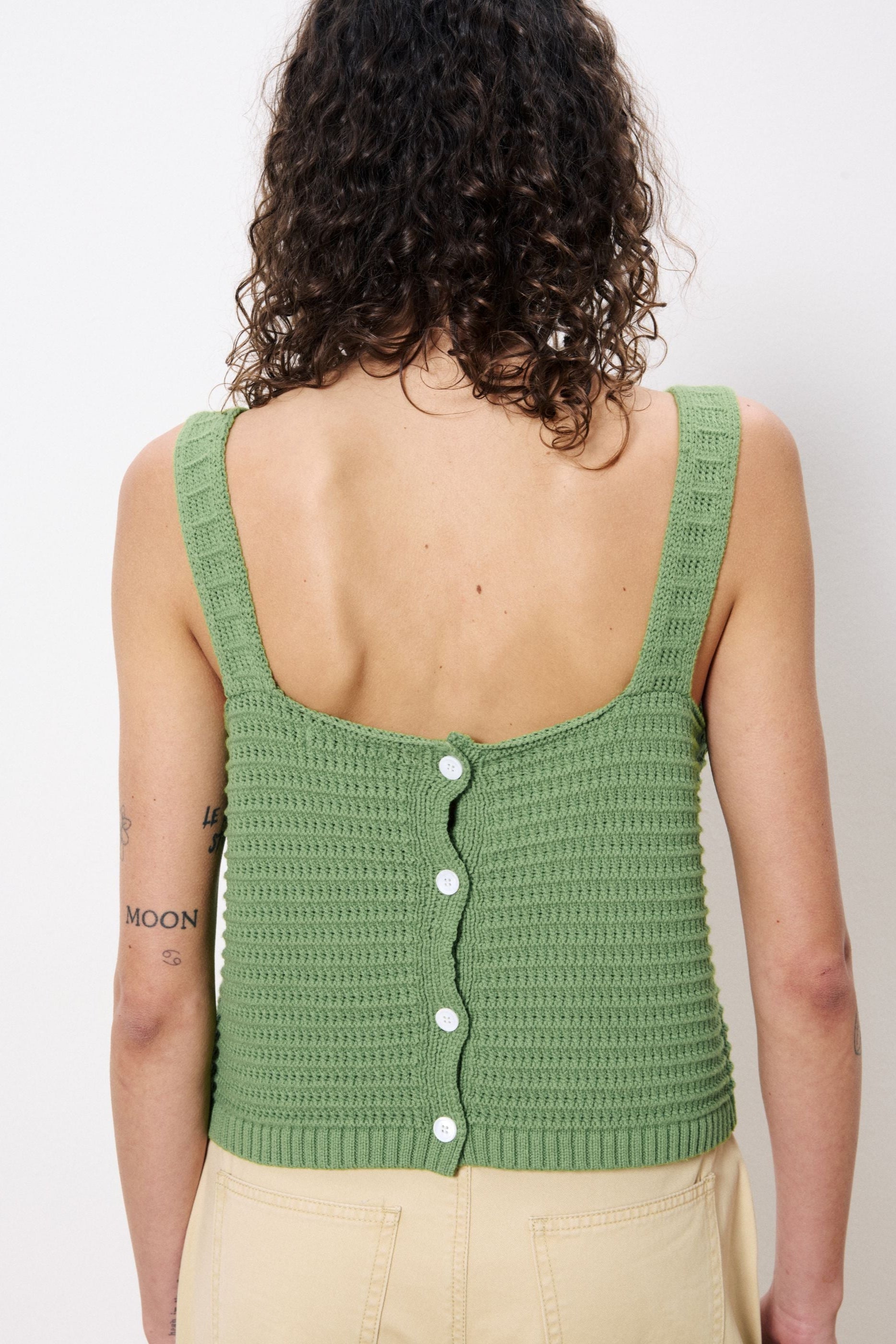 Frnch’s latest collection of closet essentials, crafted from a knit cotton fabric blend This one comes with a flattering square neck an easy, perfectly relaxed fit and beautiful back buttons.