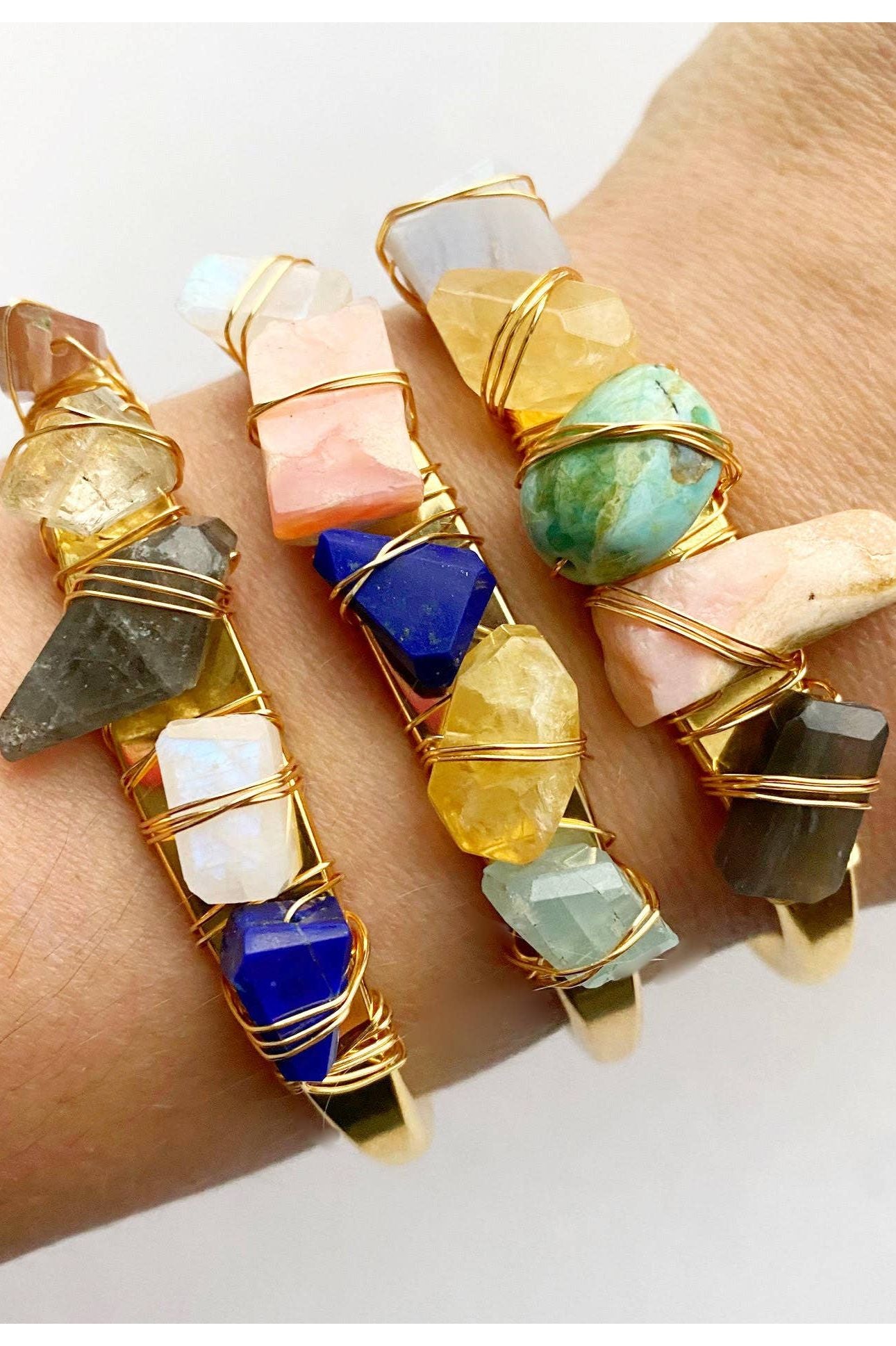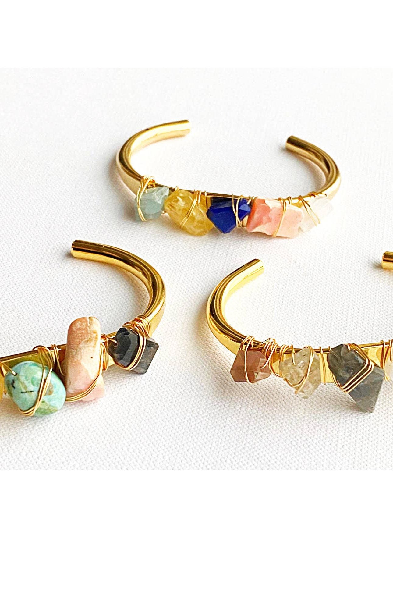 Crystal Cuff- Gem Stone Bracelet - by Etymology Jewelry