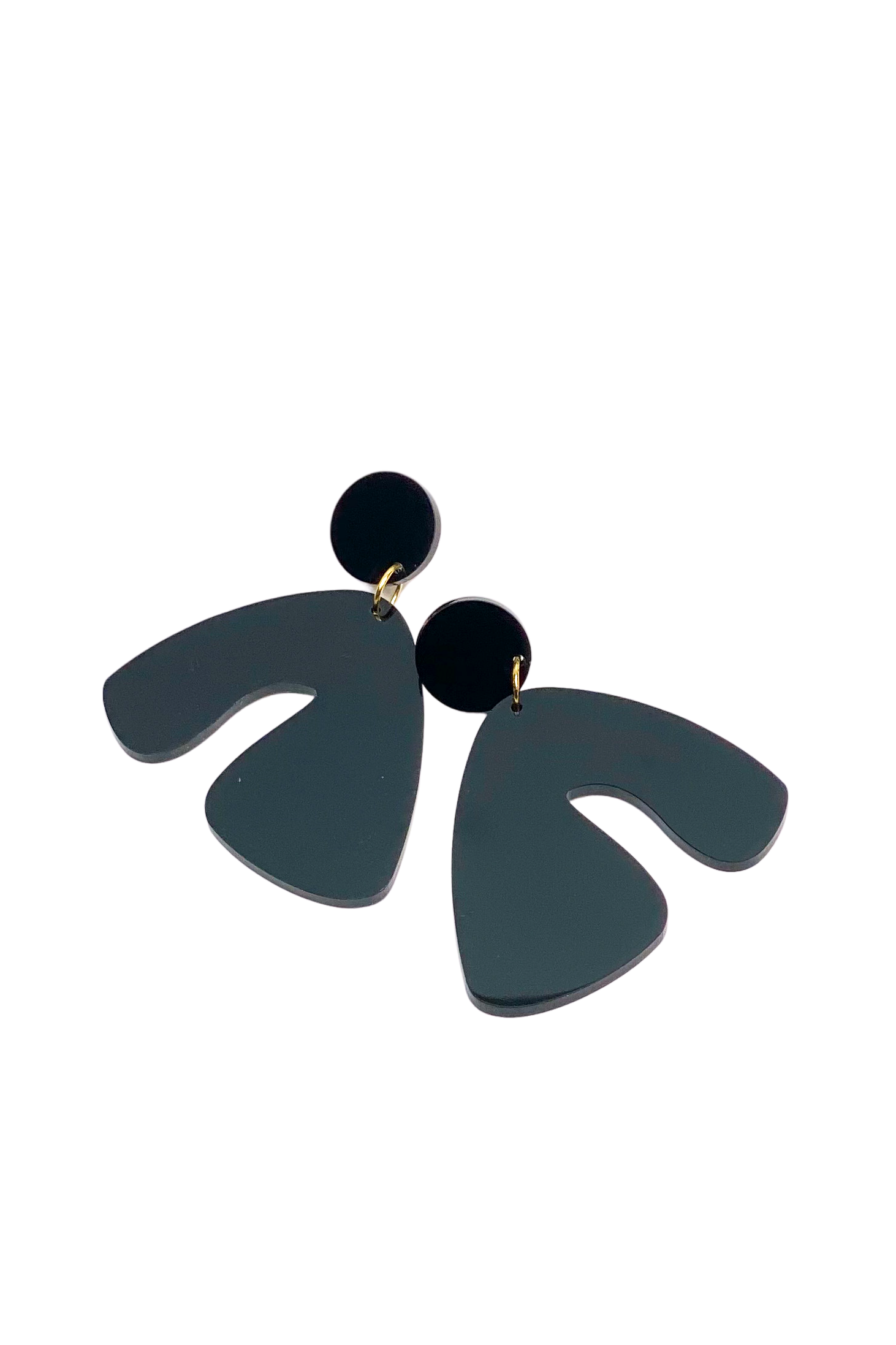 A Meri-Mak classic, and perfect for polishing off any outfit, these mirror black arch earrings (with shine) make a statement, effortlessly.