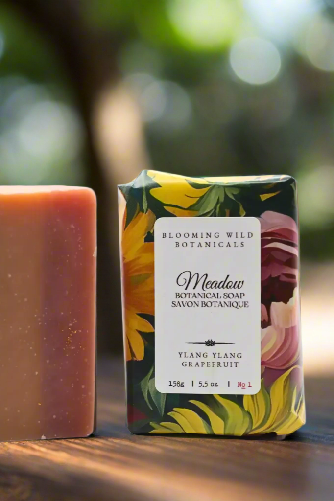 Blooming Wild Botanicals cure their soap for a minimum of six weeks creating a long lasting, mild bar with a creamy lather. These bars feature a delightful, scented reminder of summer, during the winter months.