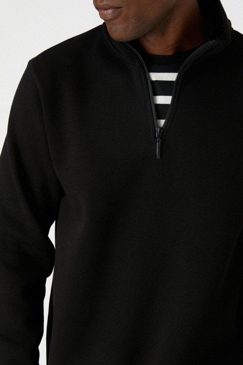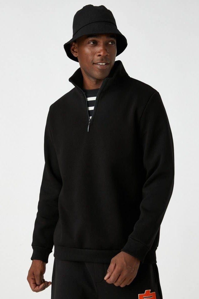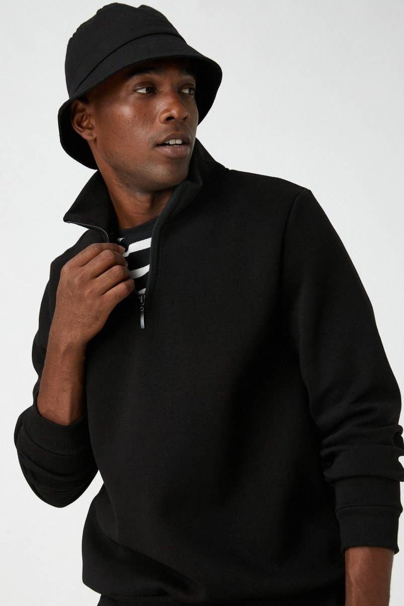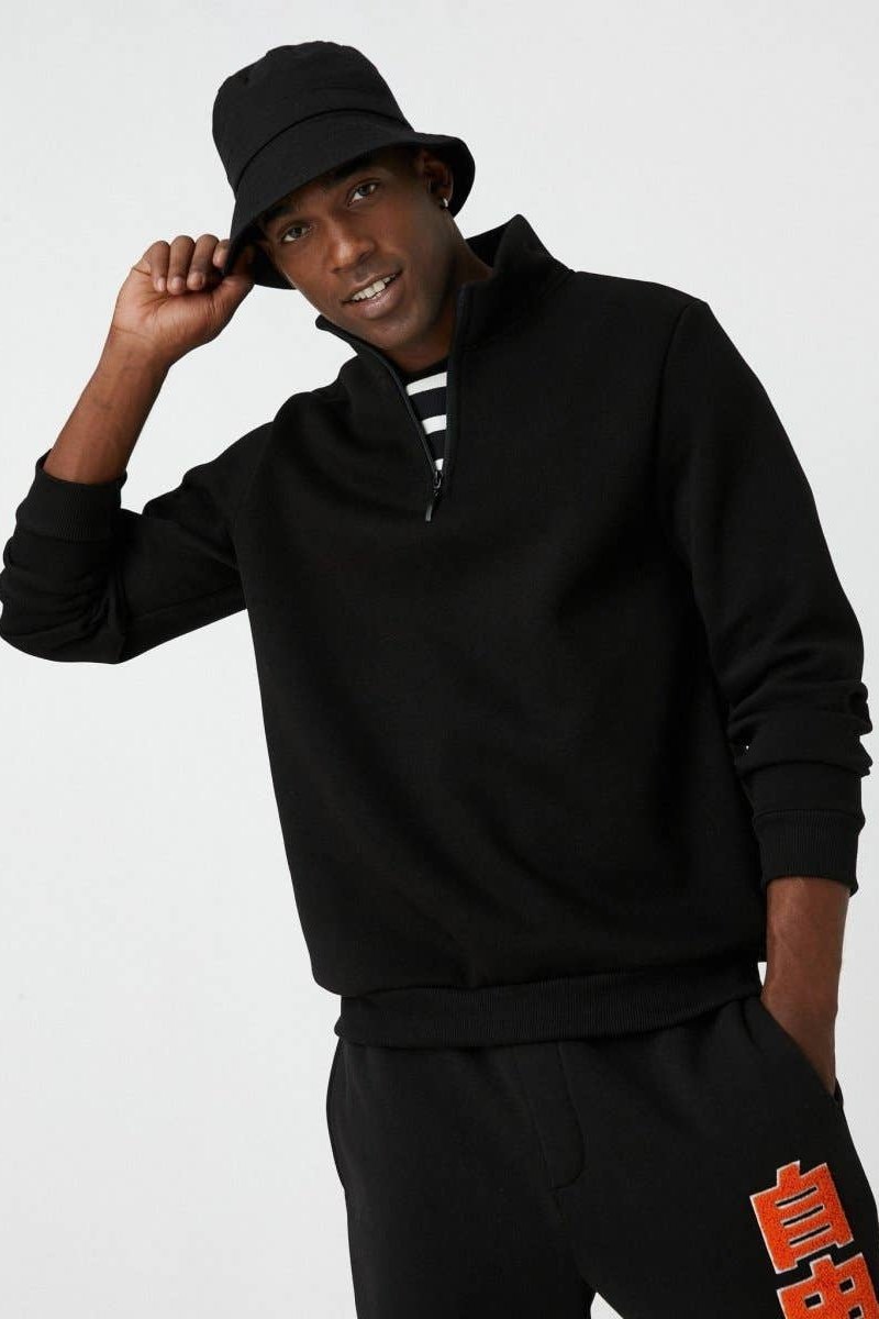 Crown yourself the comfort king in this softly half zipper sweater styled with a stand collar and quarter-zip closure. Wear the quarter-zip down for a casual vibe, or zip it up halfway for a more polished look—either way it’s a clothing essential. This regular-fit sweatshirt is built from a super-soft cotton blend for max off-duty comfort and durability. The high neck soft sweatshirt with half zipper is especially treated for minimal shrinkage – so you can order your true size and count on it to stay that way. A cozy staple with a boxy fit, whether it’s zipped up and worn as a stand collar or laid flat with a layered tee on display, this half zip sweatshirt is a warm addition to every outfit with comfort.