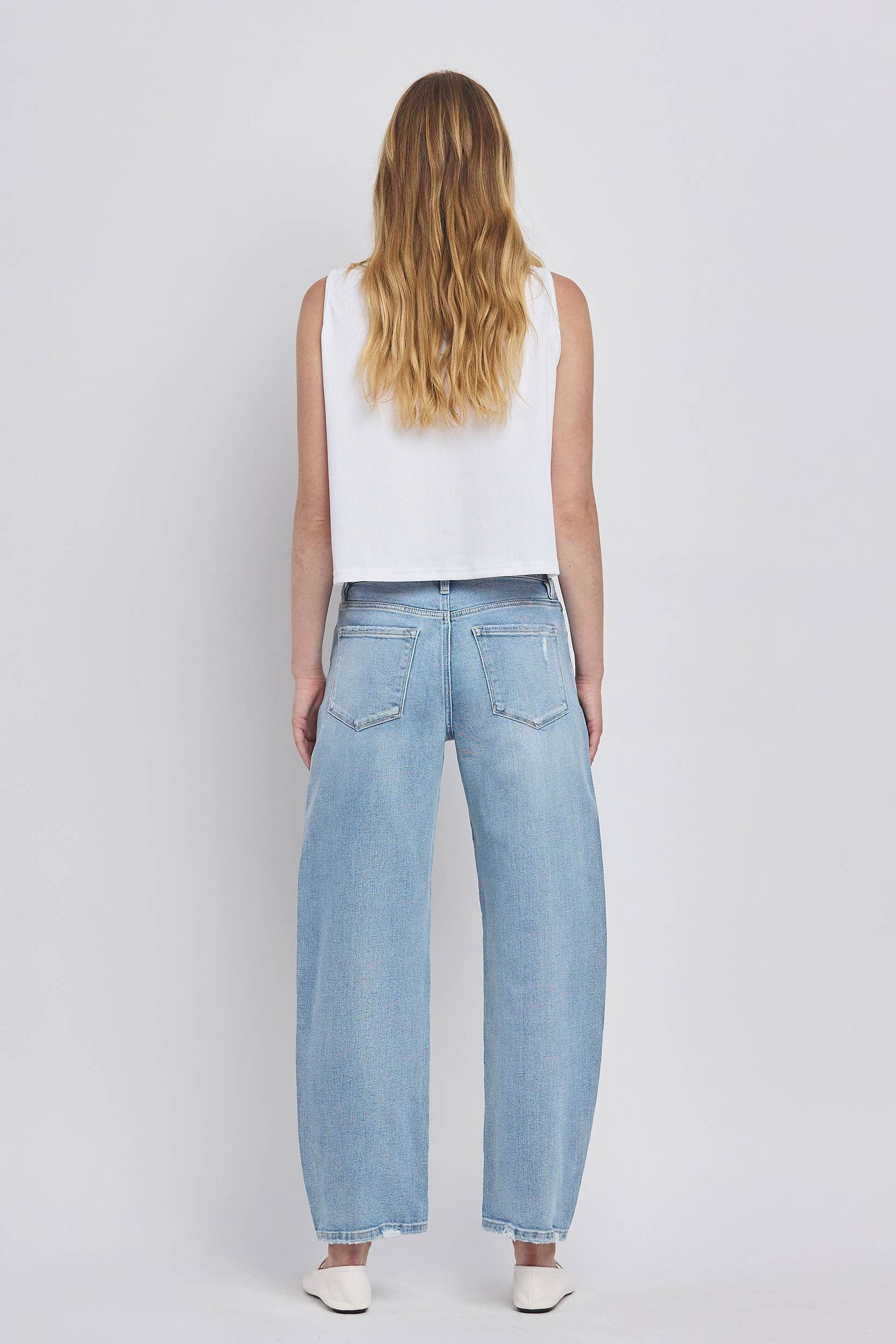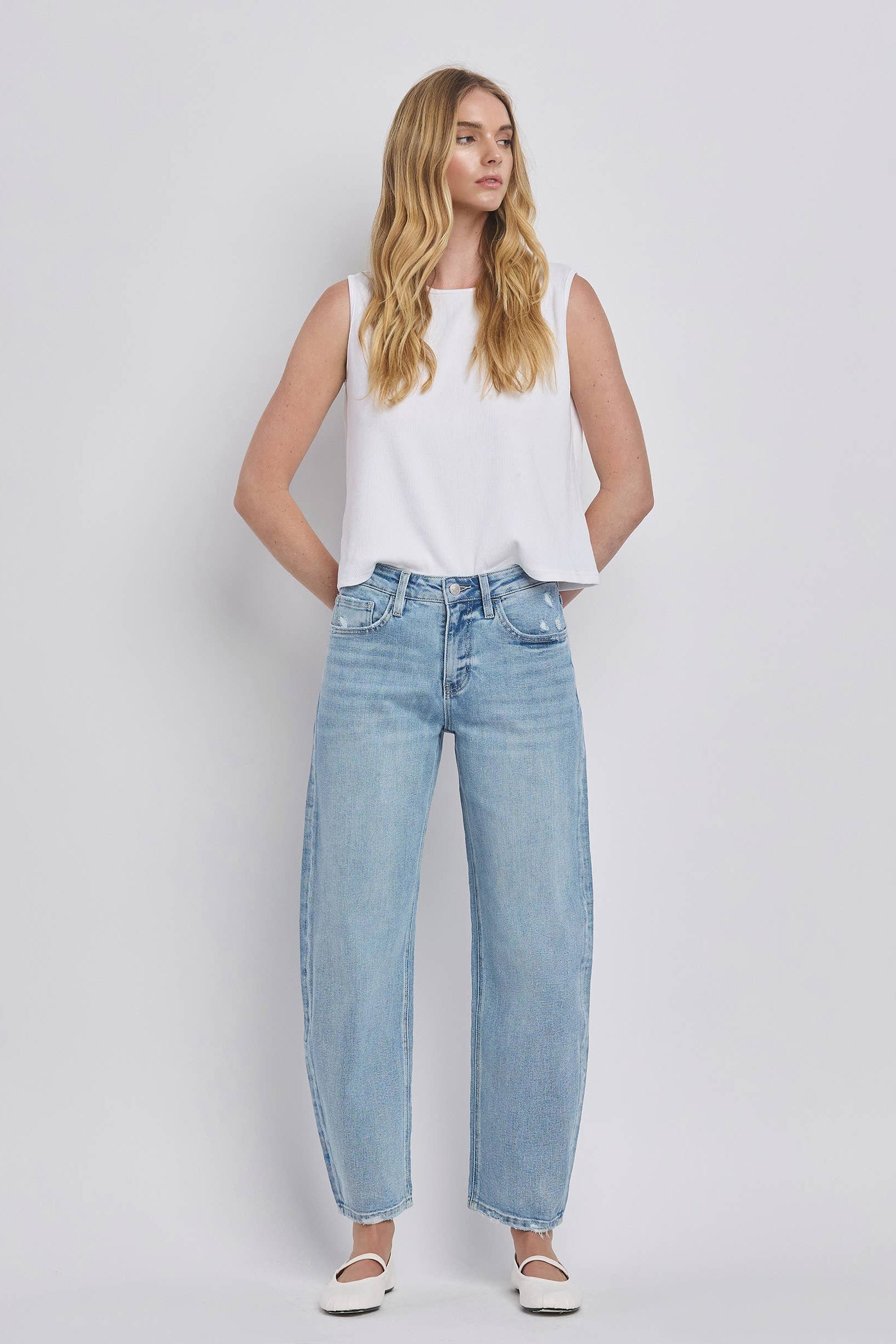 A trending take on the everyday jean. It's designed with a flattering mid-rise, a bow-shaped leg that tapers at the ankle and side-seam details that add structure to the shape. Plus, it's crafted from a lightweight-yet-sturdy cotton blend that's perfect for warmer days ahead.