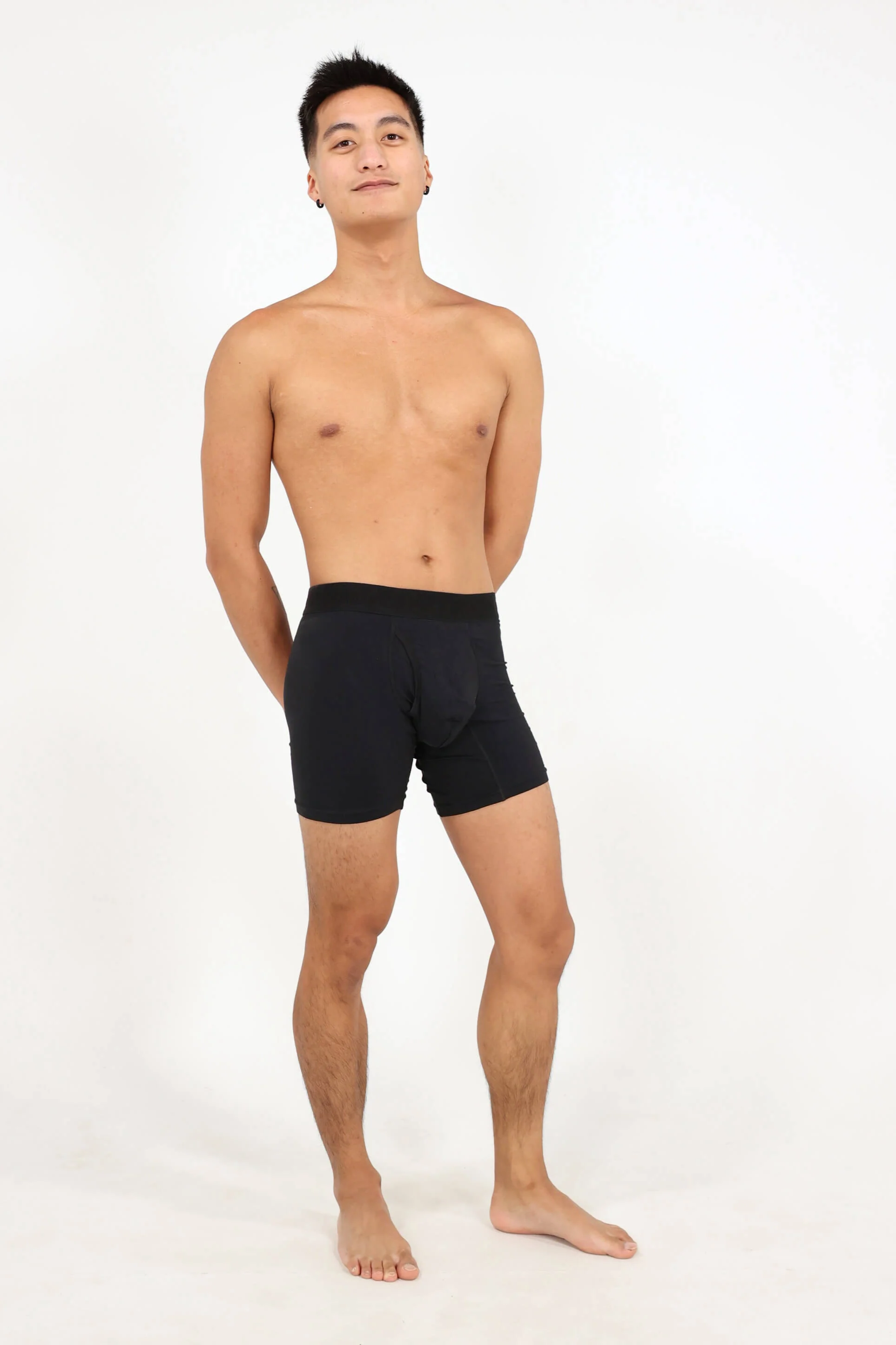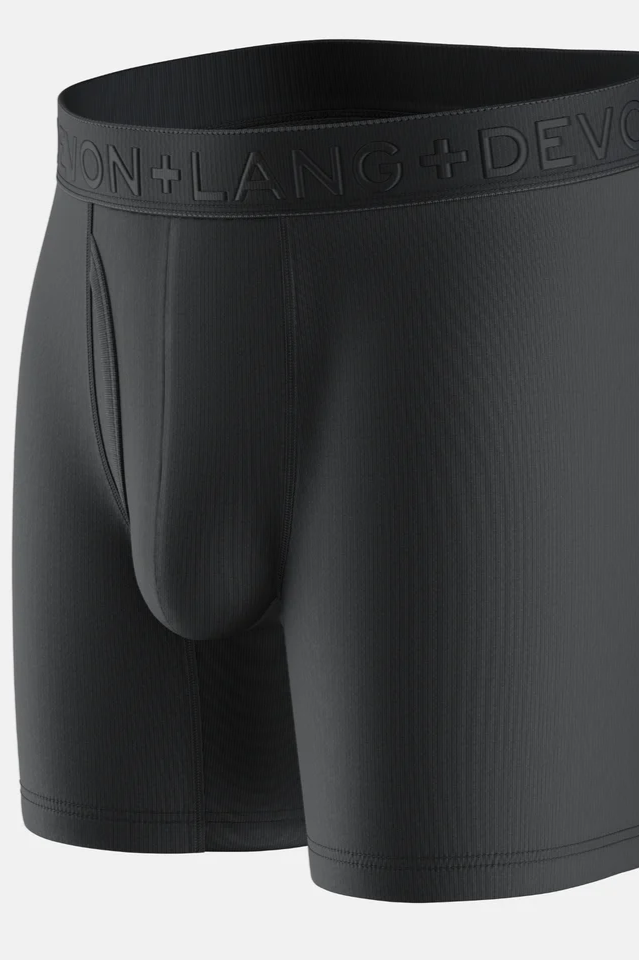Devon + Lang Journey Boxer Brief for men. Made from silky smooth modal fabric, this boxer brief features a unique pouch design that separates your balls from your legs, reducing heat buildup and providing a more comfortable and supportive fit. The durable inner-thigh panel reduces chafing, making it ideal for active use, while the 6" inseam provides ample coverage and support. Whether you're lounging at home or hitting the gym, the Devon + Lang Journey Boxer Brief is the perfect choice for all-day comfort and performance.