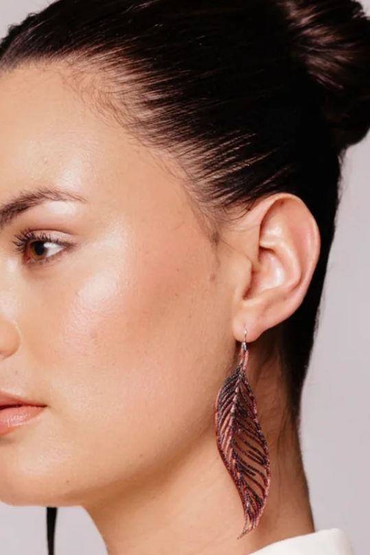 Just in time for party season. These lightweight, 3D printed earrings bring the fun to every occasion. They feature a large feather/leaf design in a dynamic two-tone colorway. Want to keep your jewelry looking like new? We recommend removing it before showering or exercise and putting it on after applying hair products or perfume. To clean your pieces, polish them with a soft, dry cloth—and when not wearing, store them in a pouch or jewelry case.