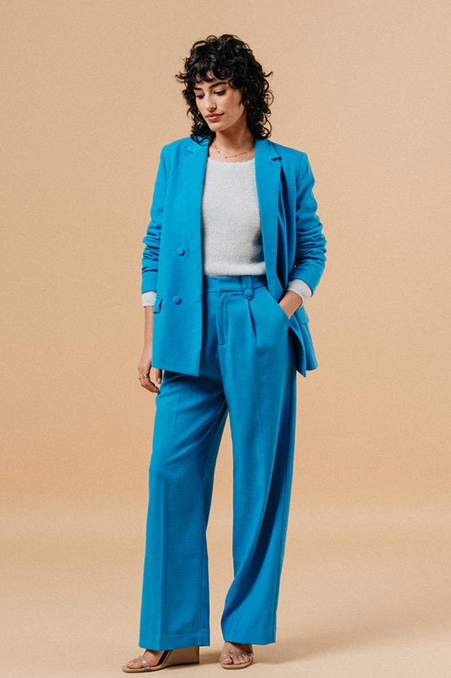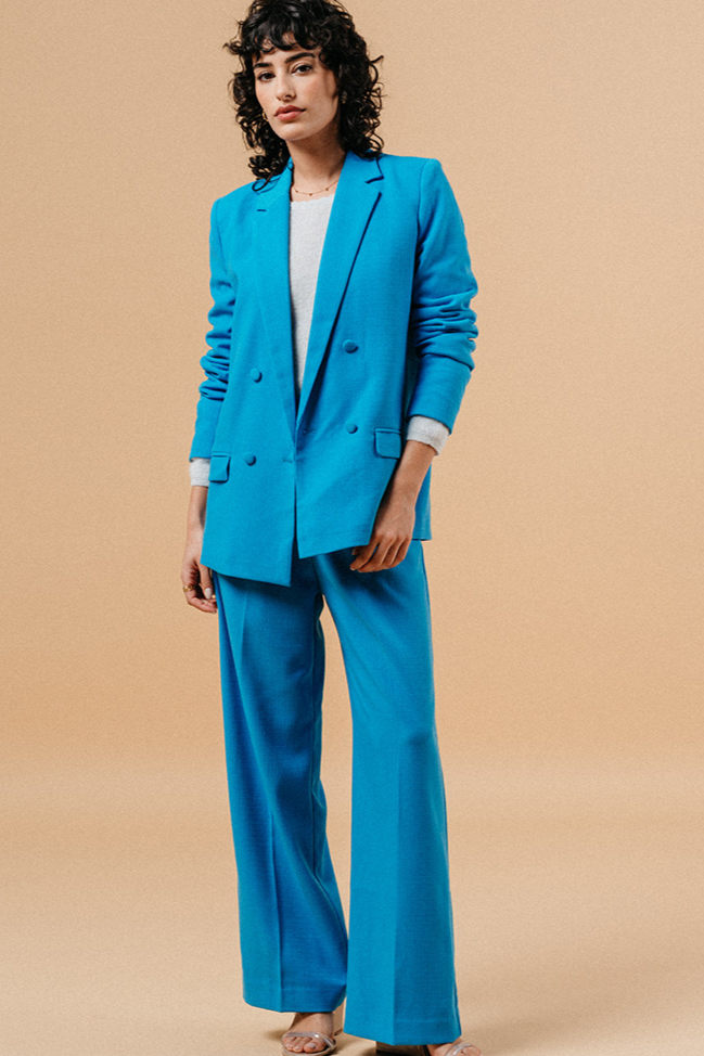 Colour may as well be a byword for summer as far as we're concerned, which is exactly why we've selected the Marly trousers in this beautiful hue. Sitting high on the waist, fitted through the hips, they fall into breezy wide legs that pool at the ankles. All they need now is a dose of sunshine. Complete the set... pair with the Mazarine blazer.