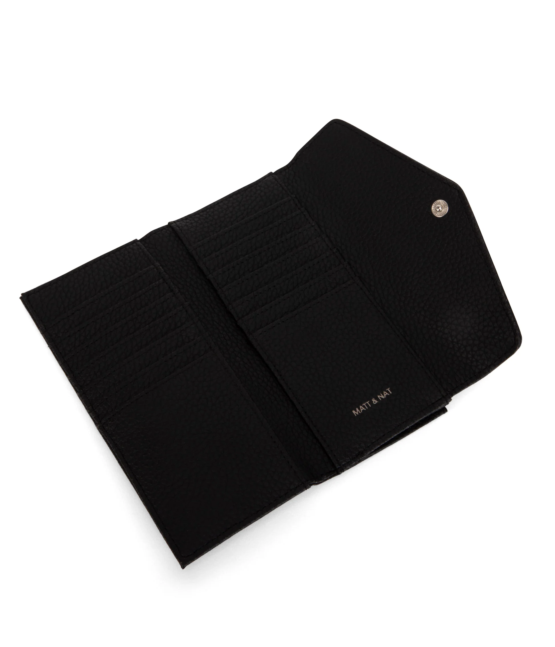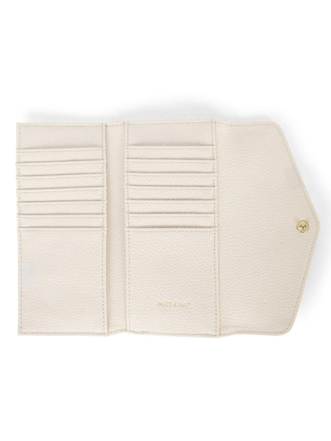 We love this cute and functional folded wallet from Matt and Nat. The Raye wallet has a flap closure and a zippered pocket at the back as well as 2 slip pockets and 14 card slots inside.