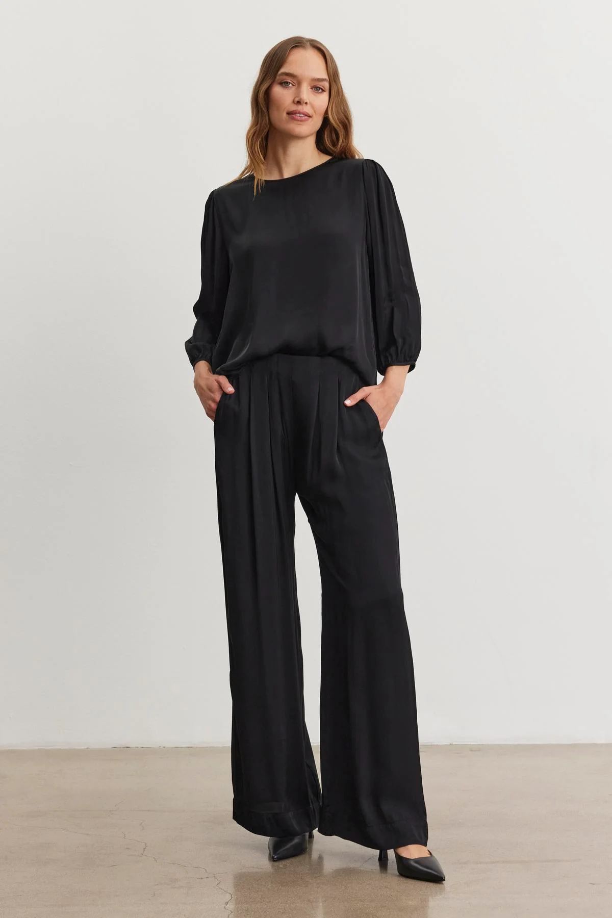 Some clothes are worth making plans for, these pants are just that. Whipped up in fluid satin, they're cloaked from hip to hem in a subtle sheen and wide leg that's guaranteed to garner you a compliment or two. The best bit? The waistband is elasticated for all-day comfort.