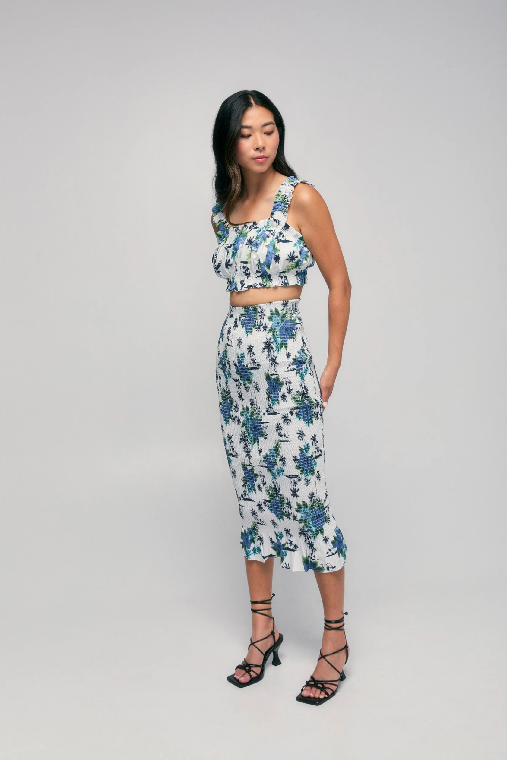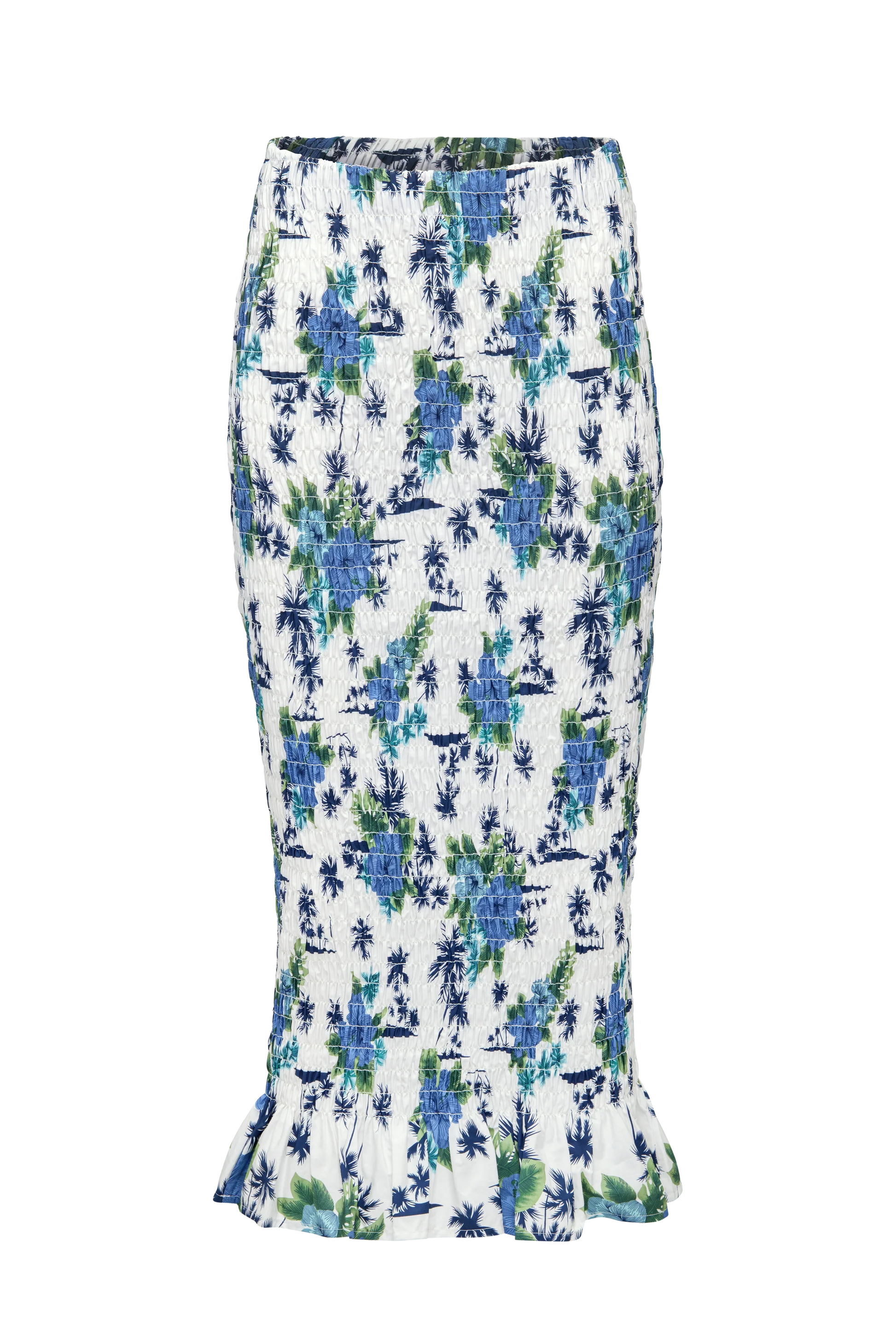 90’s inspired. This style has beautiful smocking that flatters any body shape and a comfy waistband, so you can wear it higher or lower on the hips. Want a one and done outfit? Pair with the rouched floral top.