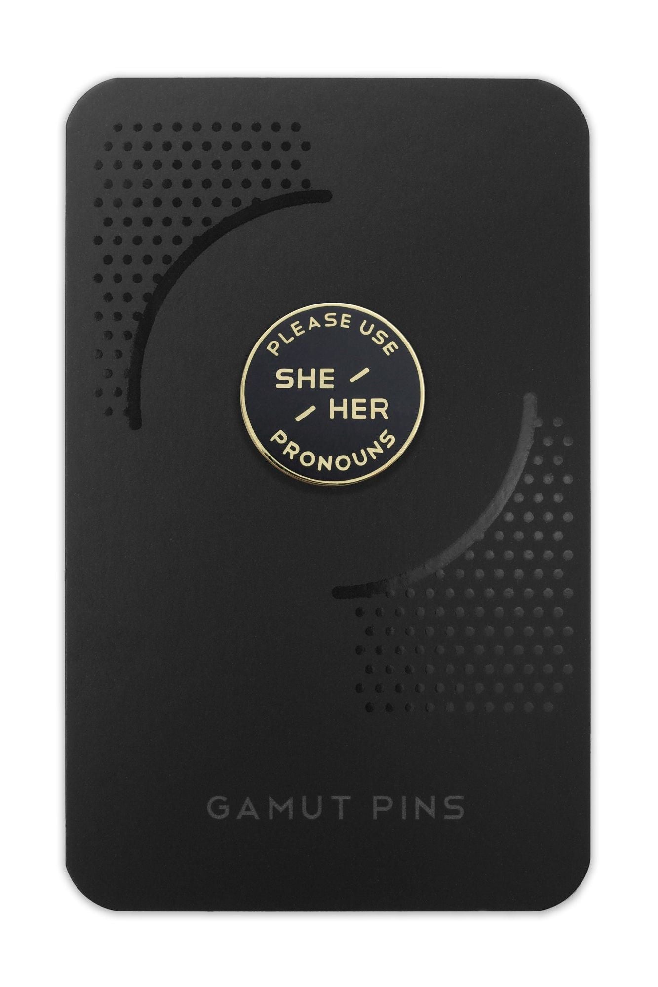 She / Her || They/Them Enamel Pronoun Pin: Black & Gold -Small