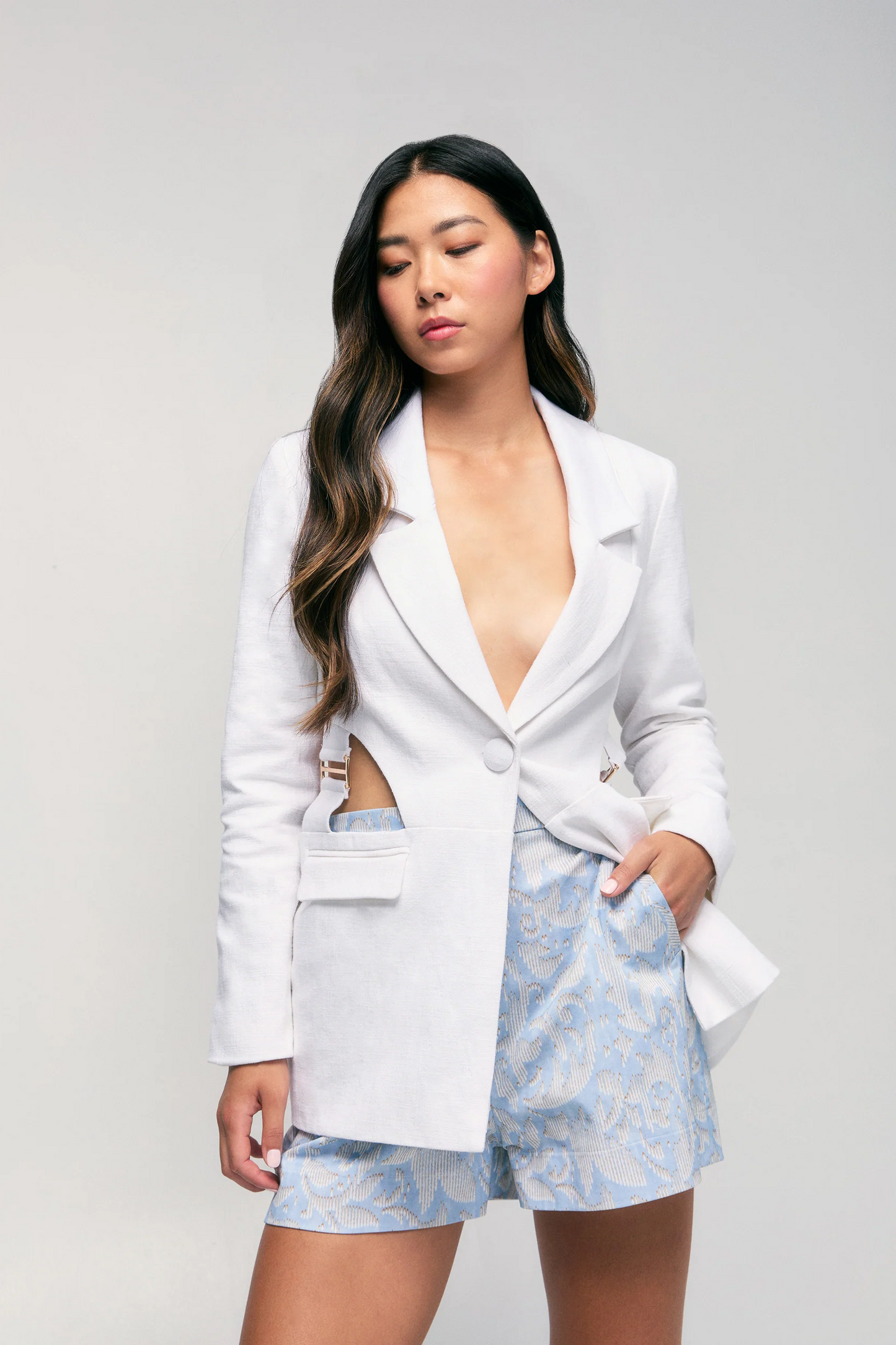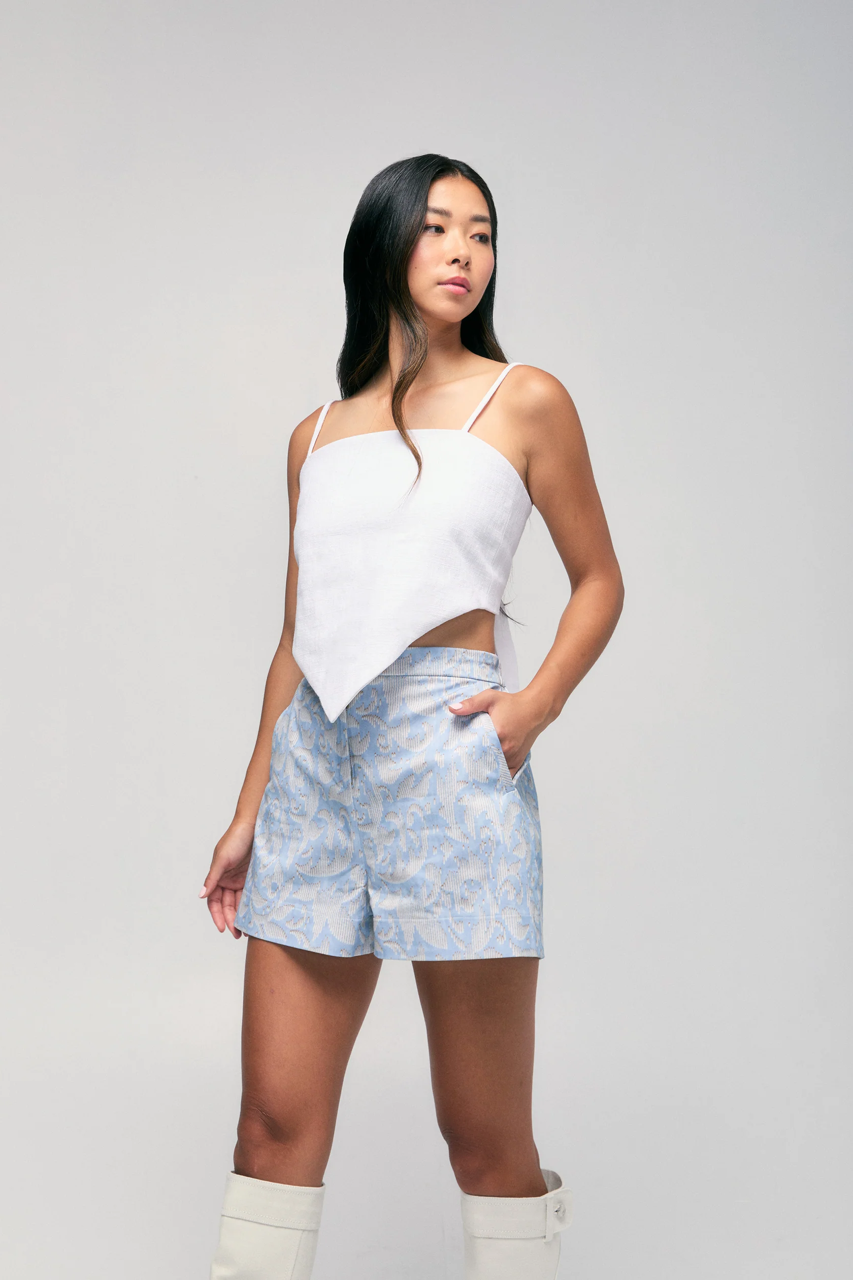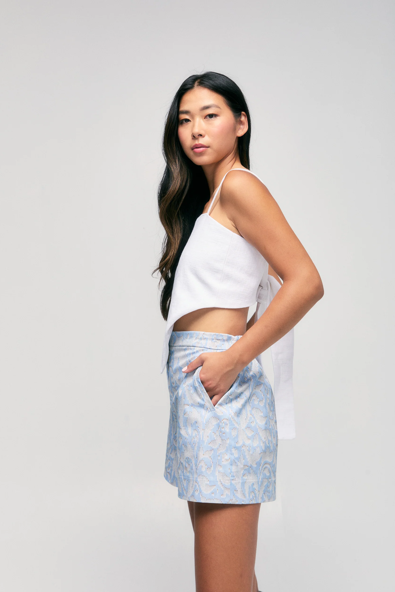 The perfect warm-weather alternative to trousers. Crafted from subtly textured and breathable cotton-blend fabric, it comes with a hidden waistband button an elasticized back at the waist. Pair with the Twill Peplum Top or Twill Double Belted Boyfriend Blazer for a standout outfit.